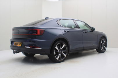 Deze Polestar 2 is uitgevoerd als Long Range Dual Motor met 408 pk en vierwielaandrijving. Een aandrijflijn die zorgt voor constante grip en een voorspelbaar karakter. De accustatus bedraagt 93,2% SoH en geeft een rustig beeld van de conditie van het accupakket.